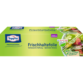 Die Toppits® Frischhaltefolie ist ideal, um Lebensmittel frisch zu halten. Die 3-Schicht-Spezialfolie haftet besonders gut, ist sehr anschmiegsam. Geschmack und Nährstoffe frischer Lebensmittel werden so länger bewahrt. Ob bei der Zubereitung, beim Frischhalten oder beim Transport von Lebensmitteln, ihre Vielseitigkeit macht sie zum universellen Küchenhelfer.