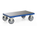 Basiswagen aus der Serie F600 als flexibles Baukastensystem mit Steck-Schraubverbindungen Solide Rahmenkonstruktion aus Profilstahl und Stahlrohr Systemaufbauten werden einfach mit dem Basiswagen verschraubt Zerlegte Anlieferung, einfache Montage Hochwertige Ladefläche aus Multiplexholz, wasserfest nach DIN EN 314-2 Ladefläche liegt geschützt im stabilen Stahlrahmen 2 Lenkrollen und 2 Bockrollen mit grauer TPE-Bereifung auf Kunststoff-Felgen Rad-ø 160 bzw. 200 mm, Radnaben mit Kugellagern, Lenkrollen mit Feststellern gemäß EN 1757-3 hochwertige Pulverbeschichtung in RAL 5010, Enzianblau andere RAL-Farben gegen einen Mehrpreis von nur 10%