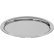 Hochglanzpoliertes Serviertablett in ovaler Form aus Edelstahl mit gebörteltem Rand.